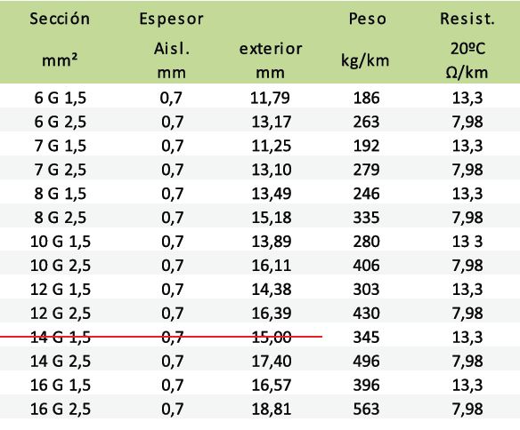 - Baja emisión de gases corrosivos / UNE-EN 50267, EN 50267 e IEC 60754-1 y 60754-2.